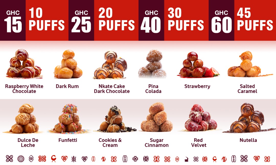 Welcome to Puffs GH, a charming café nestled on Poultry Farm Ave in Accra, Ghana, that is quickly becoming the go-to destination for dessert lovers. Known for its inviting atmosphere, Puffs GH offers an extensive menu featuring delightful treats like their signature bofrots, available with an array of delectable toppings for just GHS 15.00.